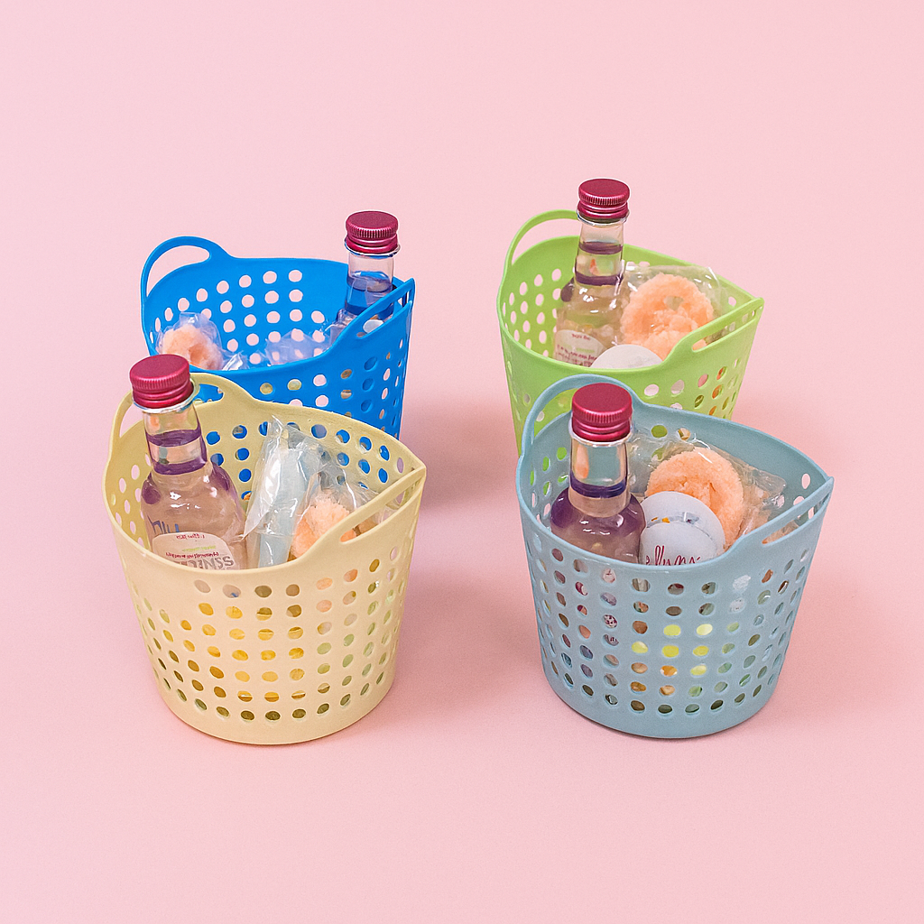 El color de la cestita será aleatorio entre los 5 disponibles: celeste, beige, rosita, verde pastel y turquesa.