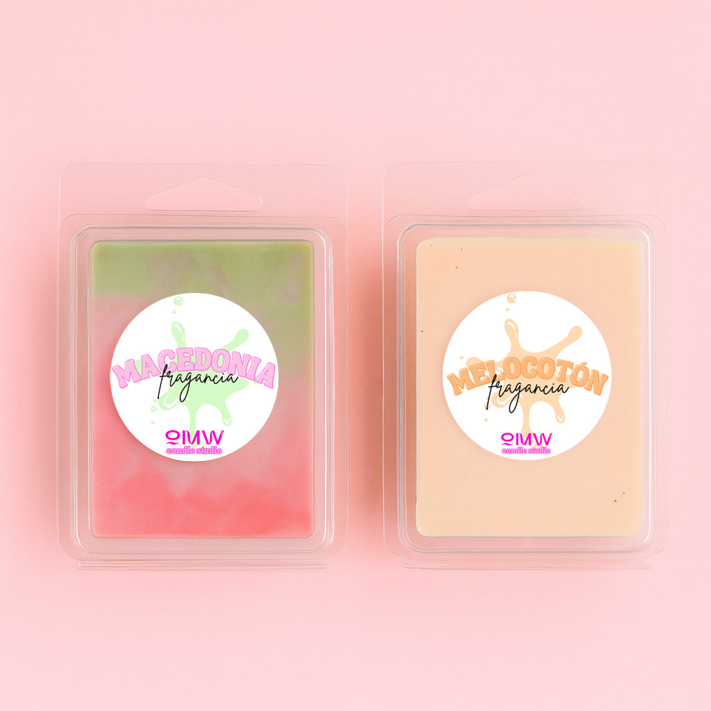 Una mezcla jugosa de melocotón maduro y macedonia dulce, con frutas tropicales y toques chispeantes. Como abrir un bol de fruta recién cortada… pero en versión wax melt 🍓🍍🍑