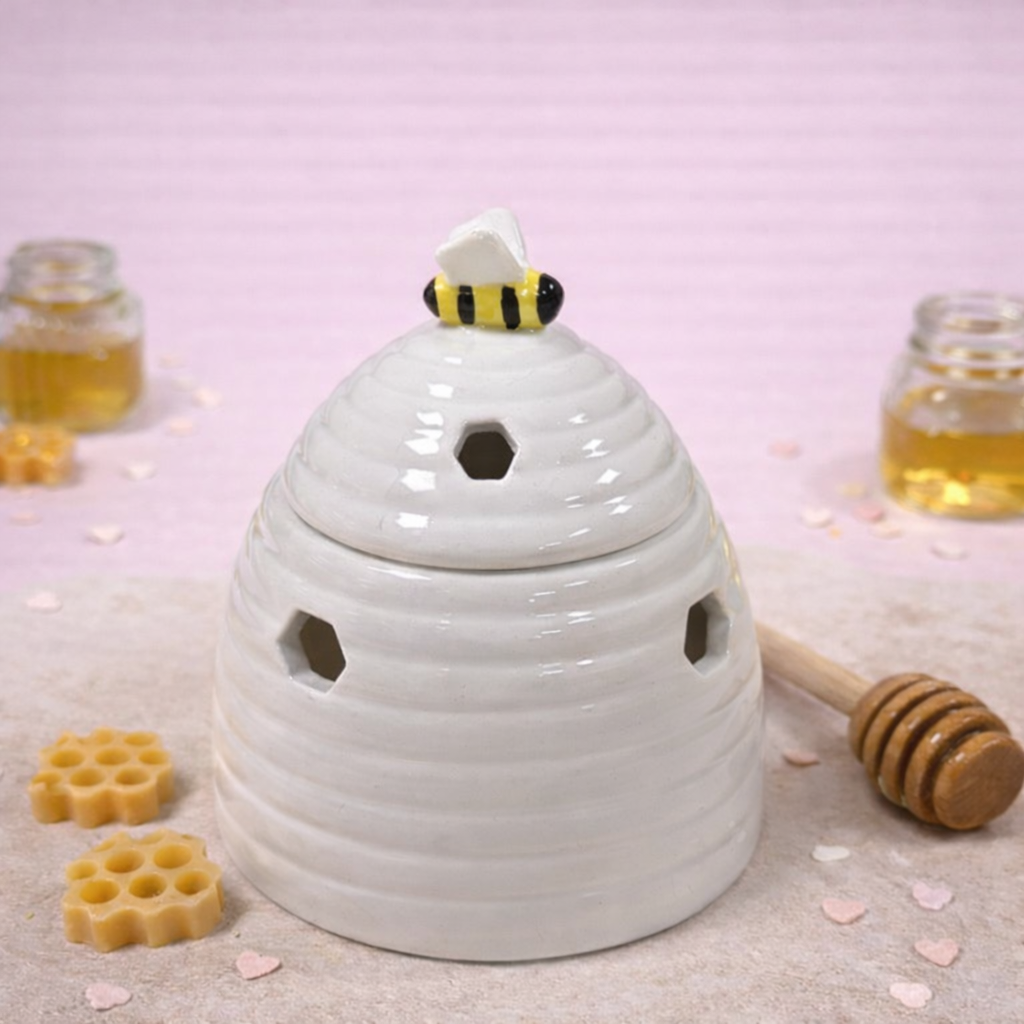 Dulce, original y con muchísimo encanto. Este quemador blanco con tapadera está coronado por una coqueta abejita que lo convierte en una auténtica joya decorativa.