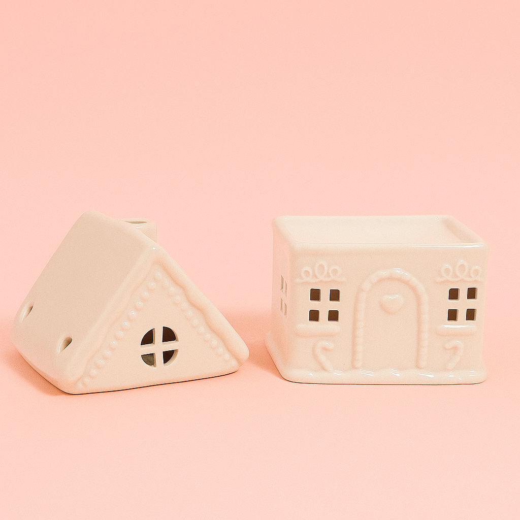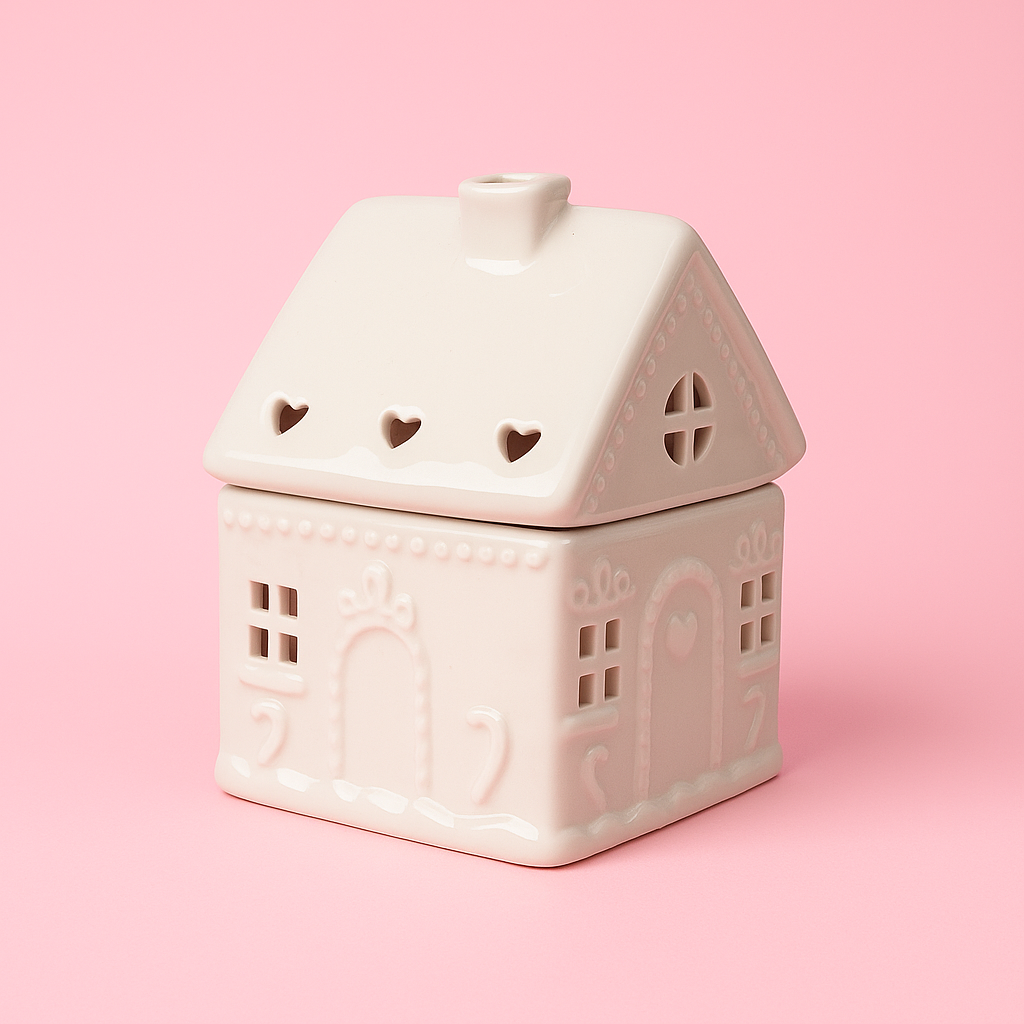 Este quemador está inspirado en las clásicas casitas de jengibre, pero con un acabado blanco brillante que le da un toque elegante y navideño a cualquier rincón.